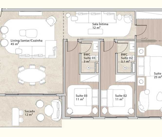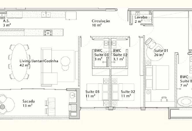 Planta 03 - 3 dorm 155m²