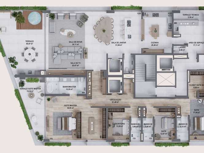 Planta 07 - 3 dorm 320,10m² - garden