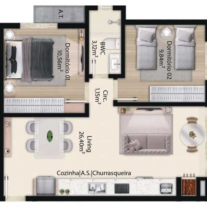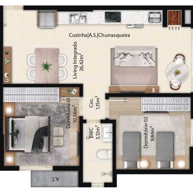 Planta 02 - 2 dorm 56m²
