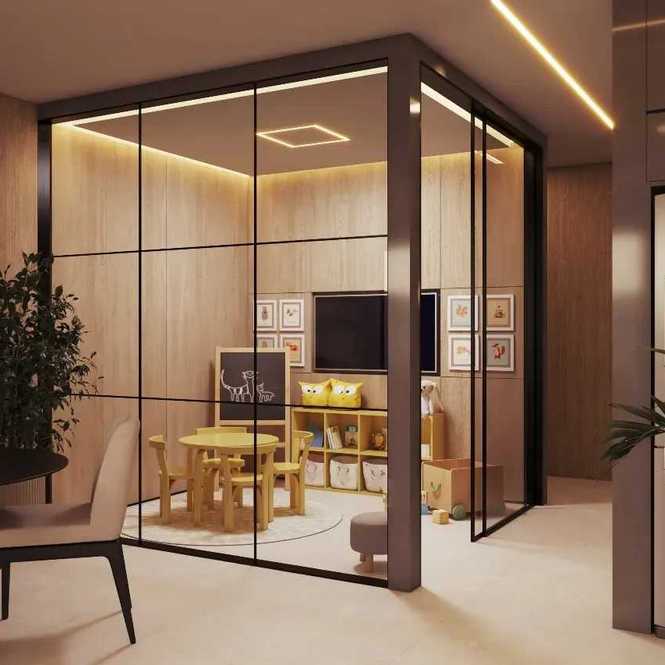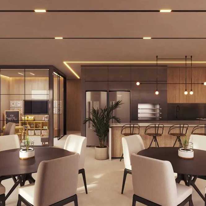 - Lazer completo com piscina, quiosque com churrasqueira, brinquedoteca, playground, sala de reuniões, espaço pet, bicicletário e salão de festas