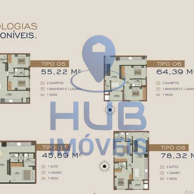 - Área privativa: 55,22m² a 64,39m²