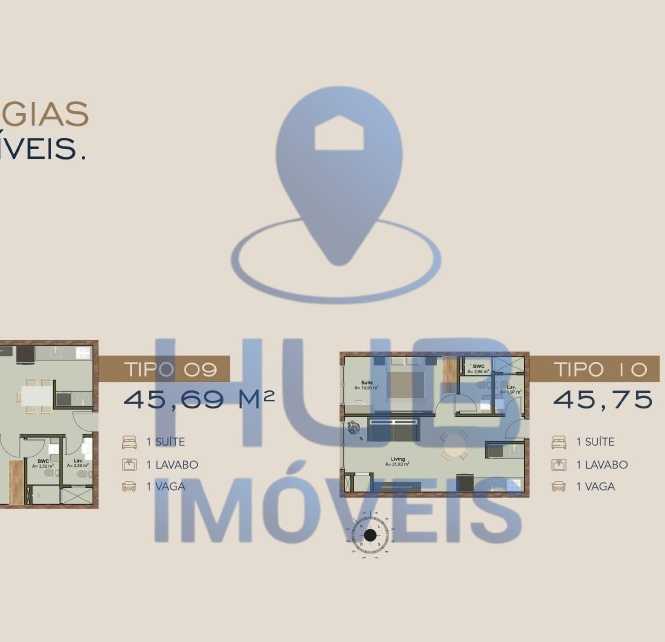 - Área privativa: 45,69m² a 45,89m²