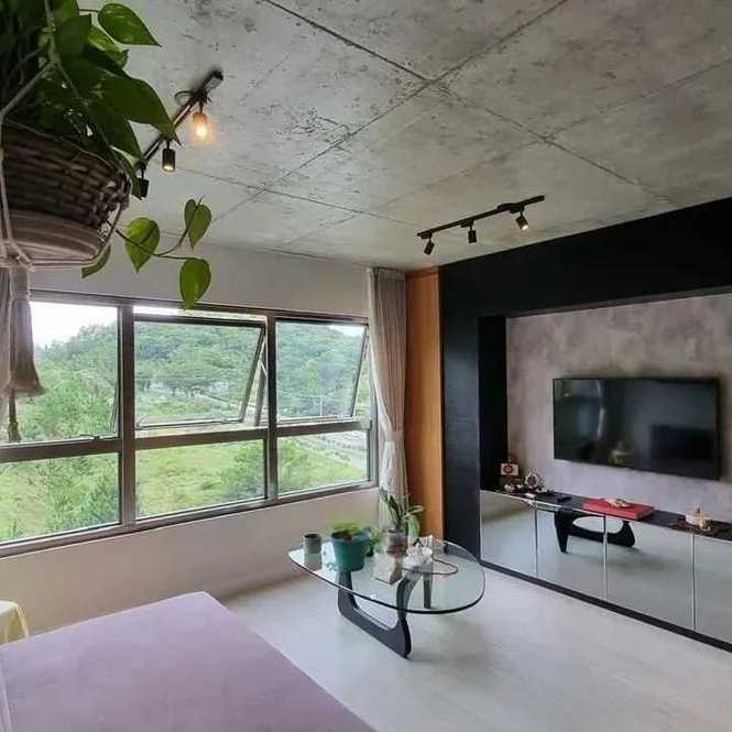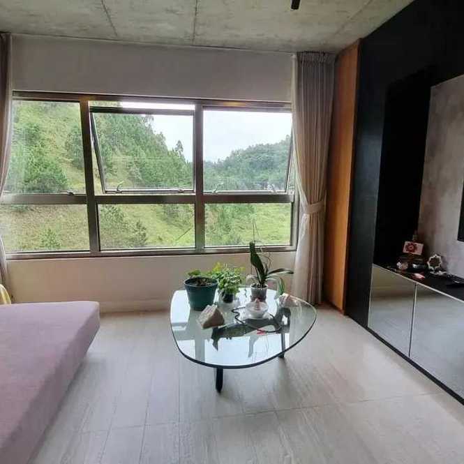 - Living integrado (estar e jantar) com ampla janela e vista para área verde