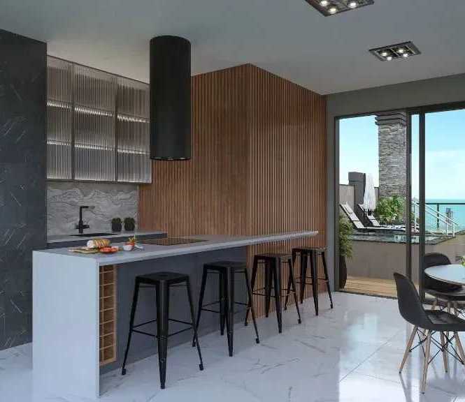 - Living integrado com cozinha e sala de jantar