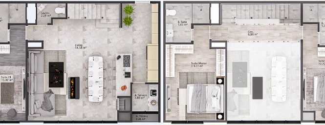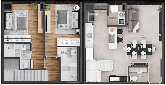 Planta 01 - 2 dorm 80m² - duplex