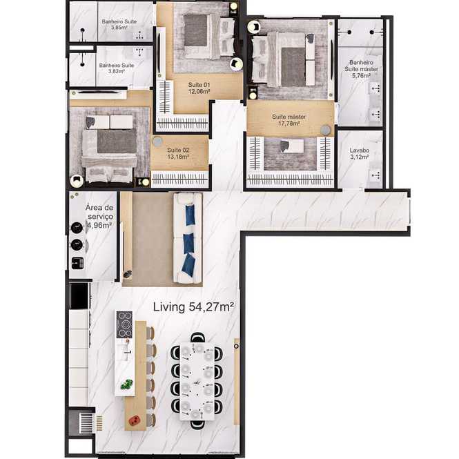 Planta 03 - 3 dorm 140m²