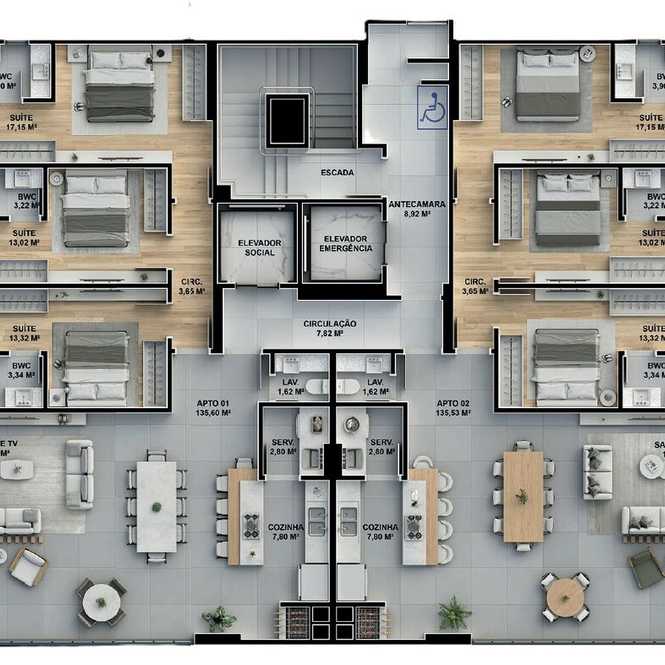 - 135.53 Área Privativa / Construída - 135.53