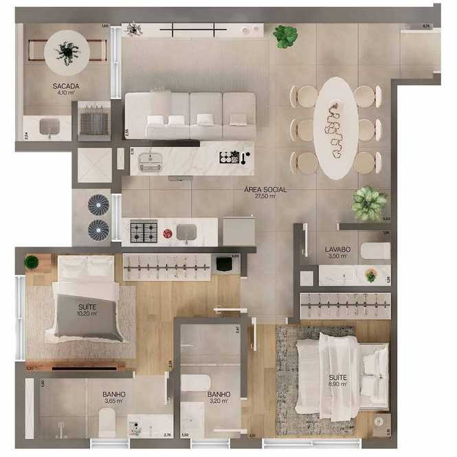 Planta 04 - 3 dorm 114m²