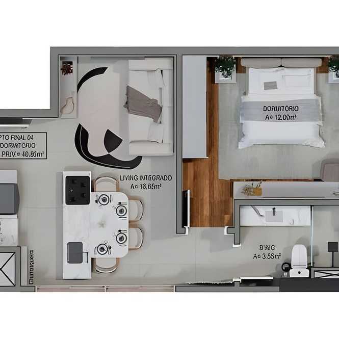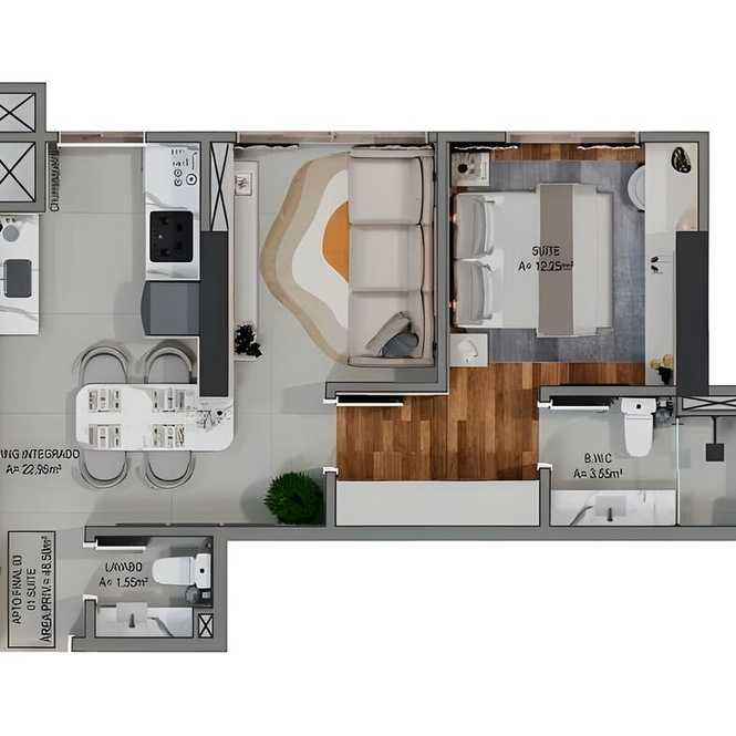 Planta 02 - 1 dorm 42,55m²