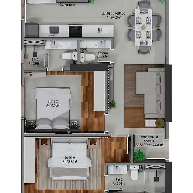 Planta 04 - 2 dorm 74,45m²