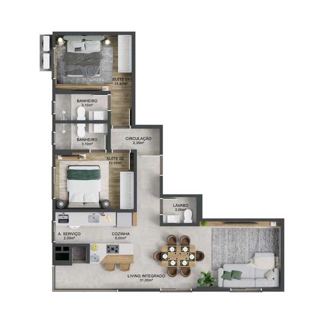 Planta 01 - 2 dorm 80m²