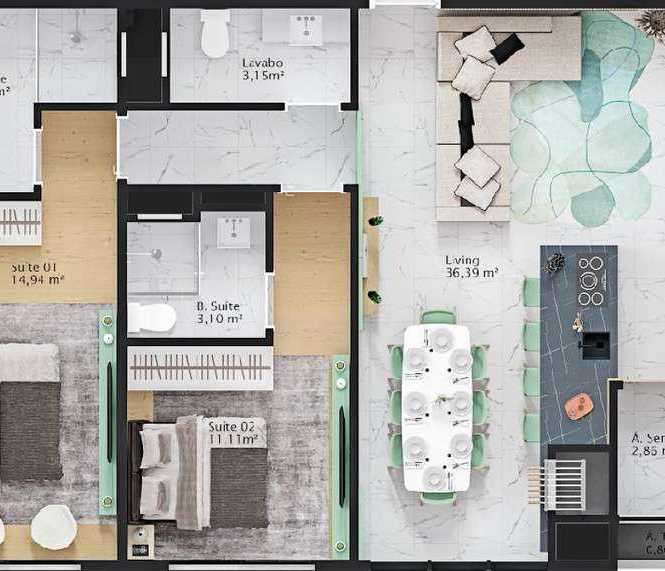 Planta 03 - 3 dorm 140m²