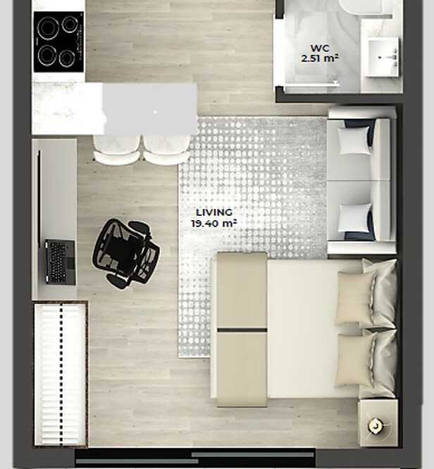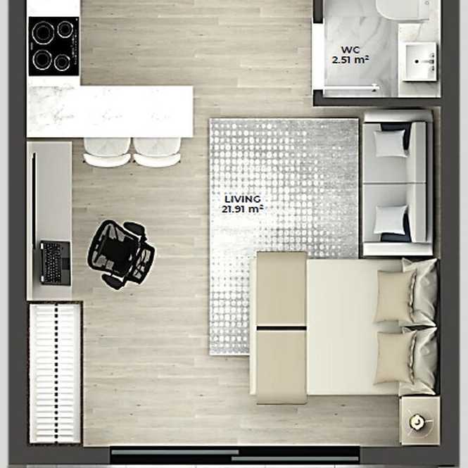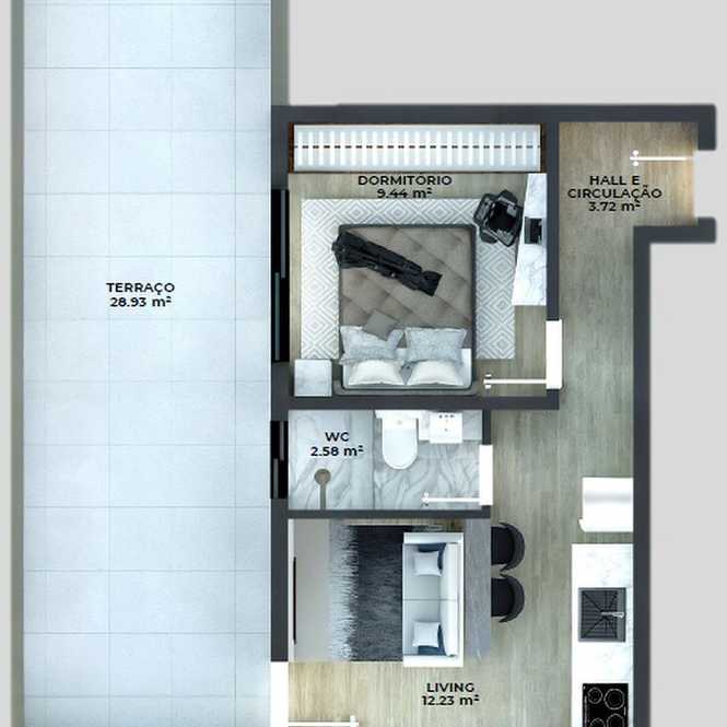 Planta 01 - 1 dorm 29,93m² - studio