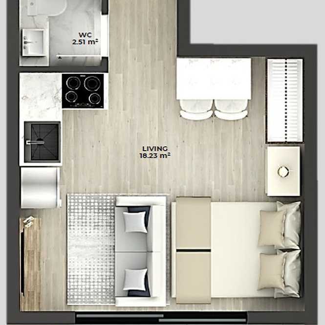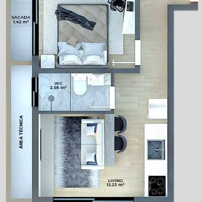 Planta 02 - 1 dorm 30,11m² - studio