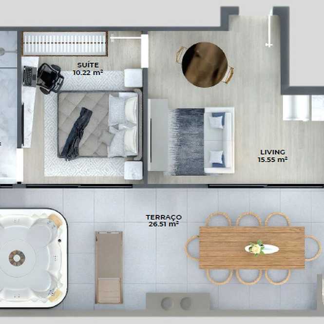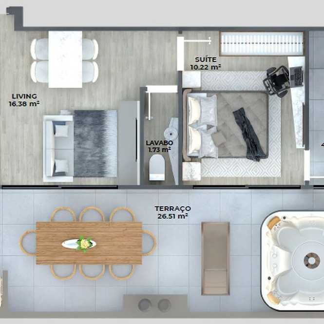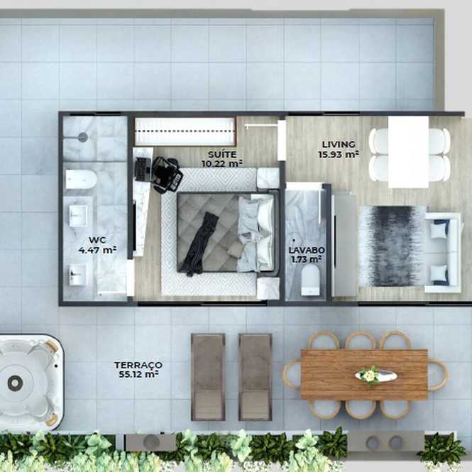 Planta 05 - 1 dorm 63,25m² - cobertura horizontal