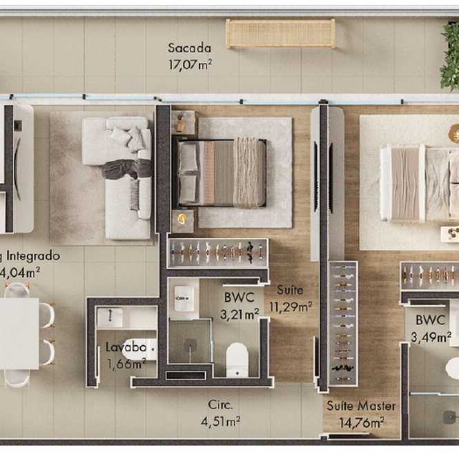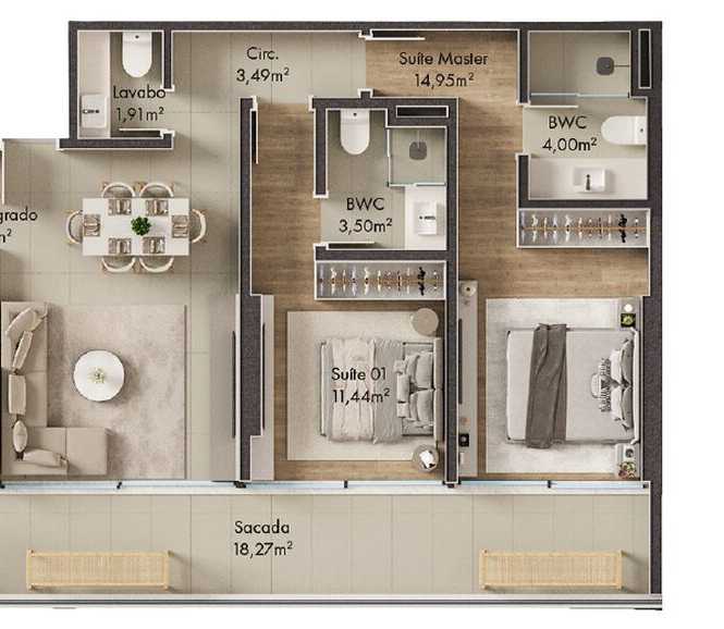 Planta 01 - 2 dorm 114,76m²