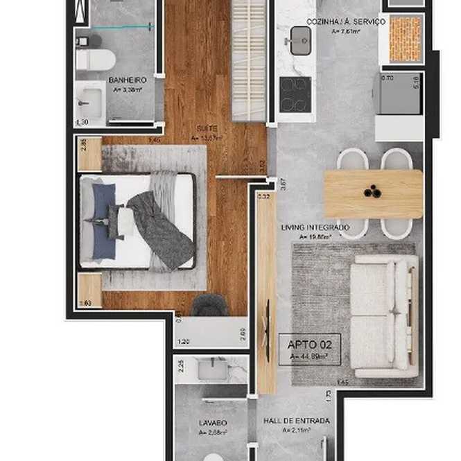 - 44.68 Área Privativa / Construída - 44.68