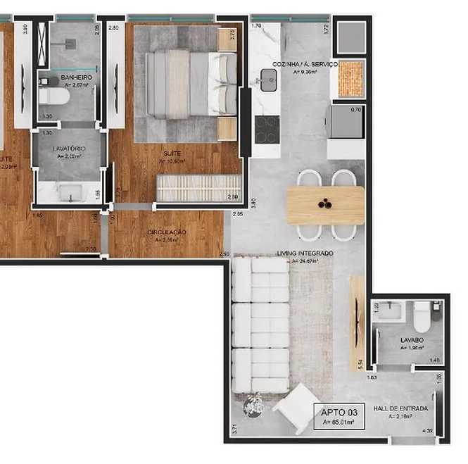 Planta 04 - 2 dorm 64m²