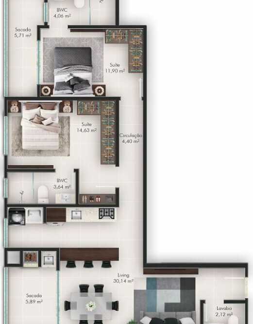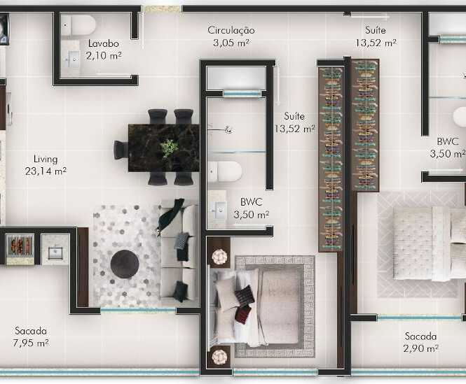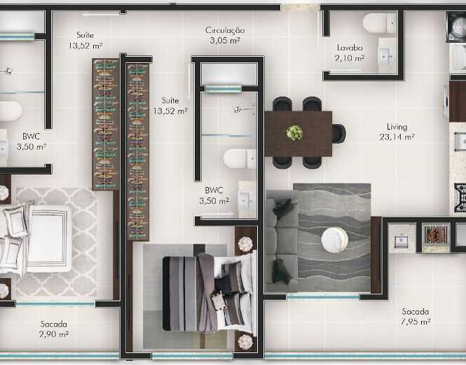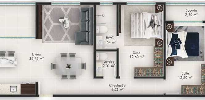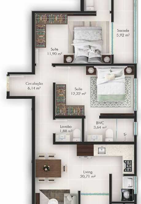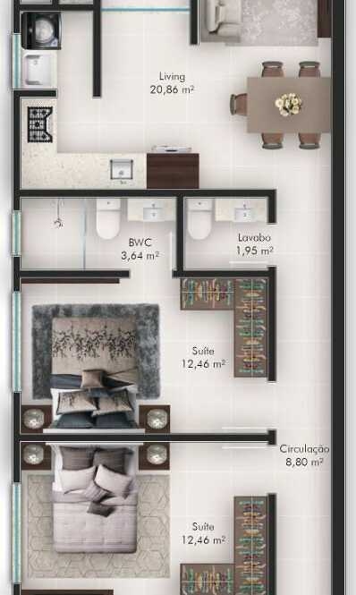 Planta 03 - 2 dorm 83 60m²