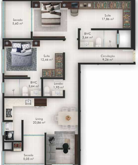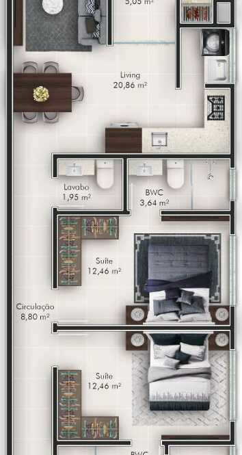 Planta 05 - 2 dorm 86 63m²