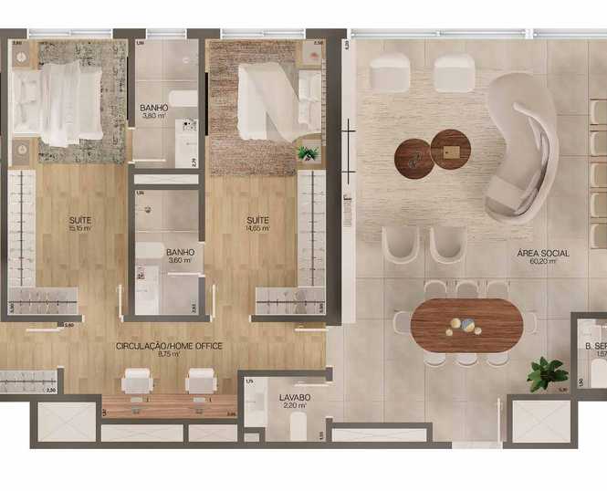 Planta 01 - 3 dorm 170m²