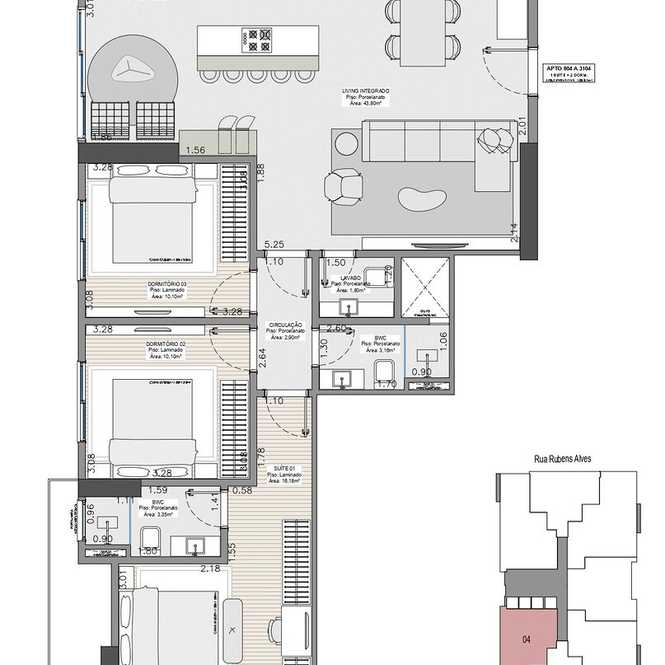 Planta 04 - 3 dorm 108,04m²