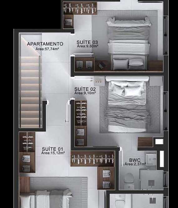 Planta 01 - 3 dorm 107,58m²