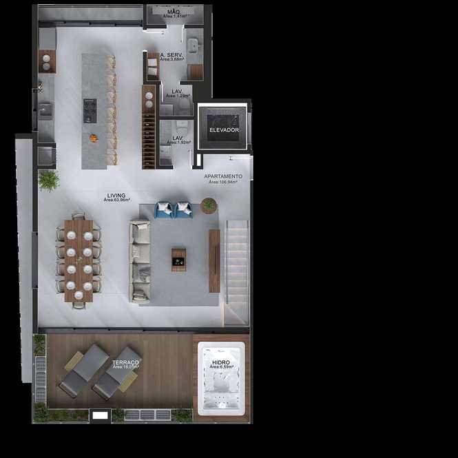 Planta 04 - 3 dorm 176,85m² - triplex - superior