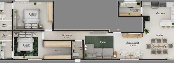 - 93.17 Área Privativa / Construída - 93.17