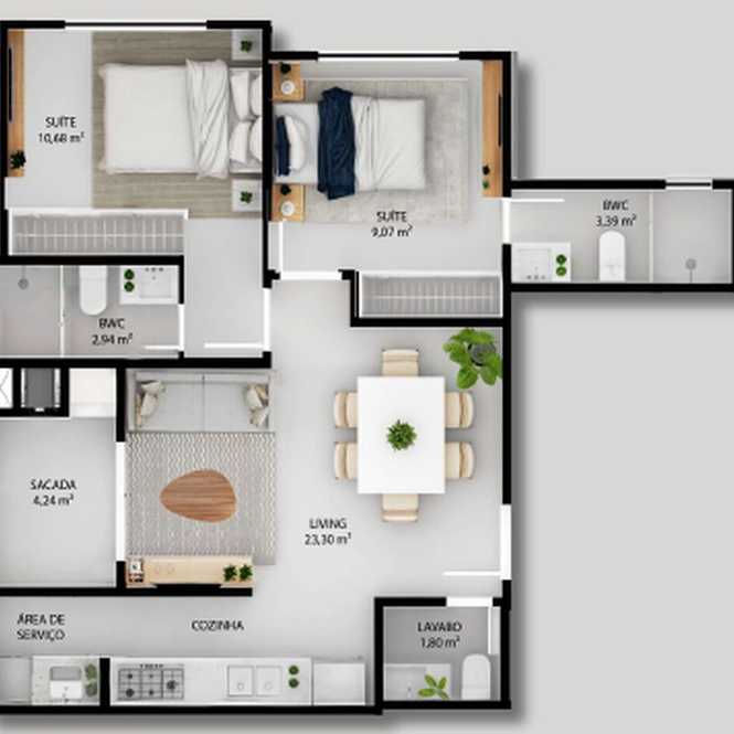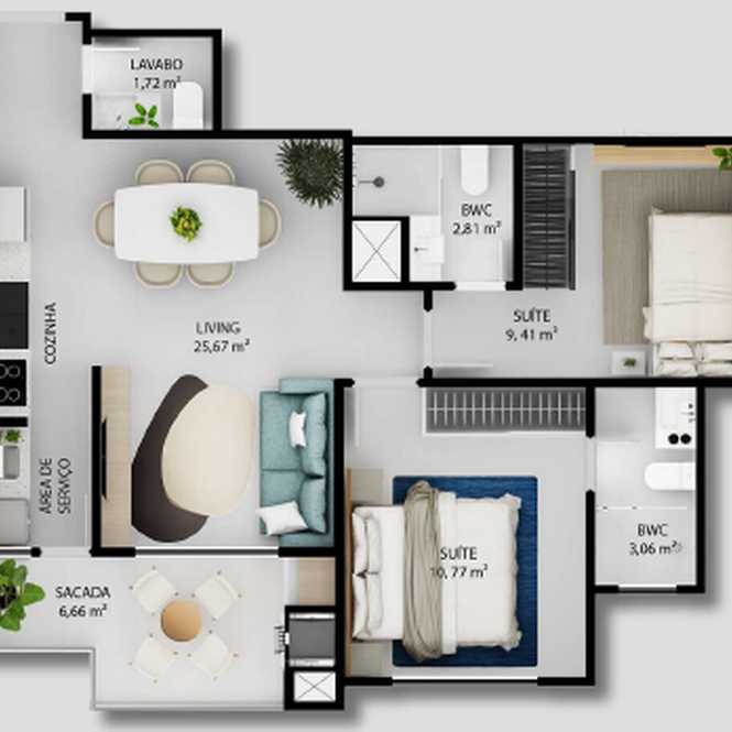 Planta 04 - 2 dorm 66,72m²