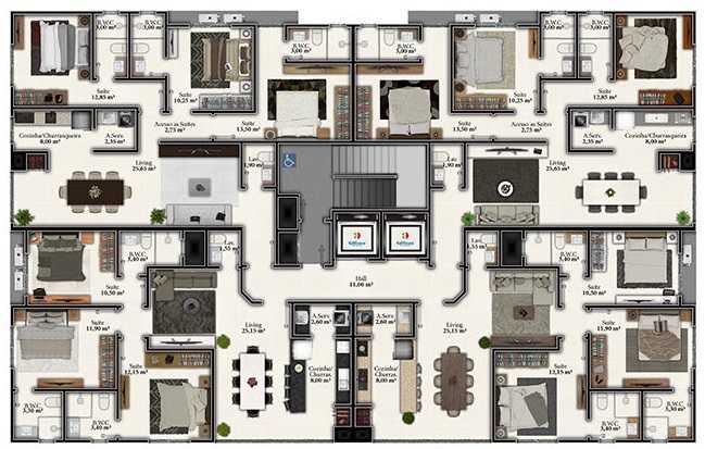 Escolha o melhor apartamento para você e sua família duas opções de living em 04 apartamentos de alto padrão pensados em seu estilo. Preço e disponibilidade do imóvel sujeitos a alteração sem aviso prévio.