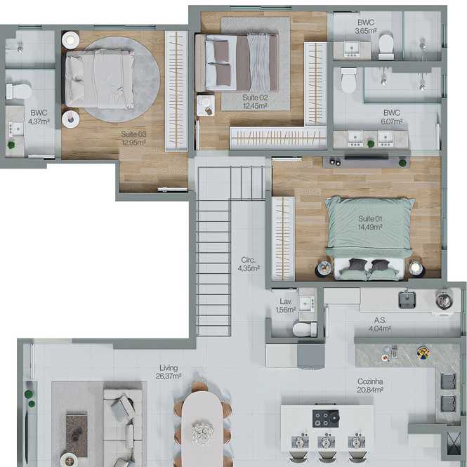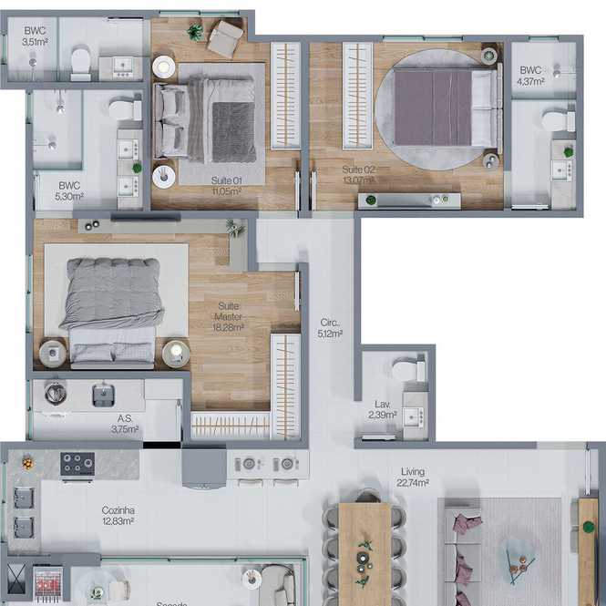 Planta 02 - 3 dorm 125m²