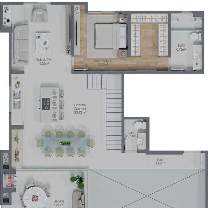 Planta 05 - 4 dorm 240m² - cobertura duplex - inferior