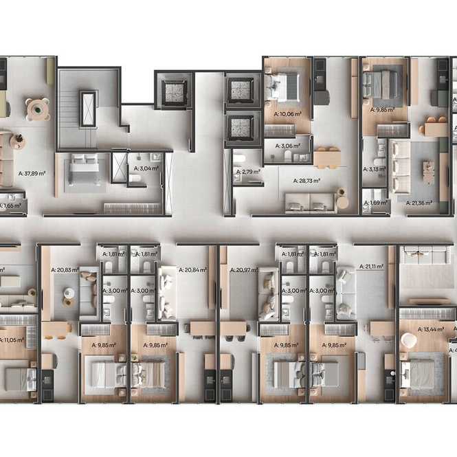 Planta 03 - 2 dorm 56m²