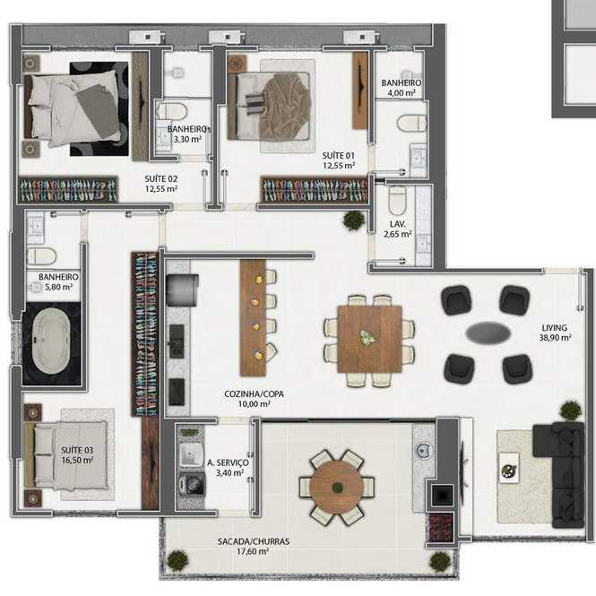 Planta 01 - 3 dorm 146m²
