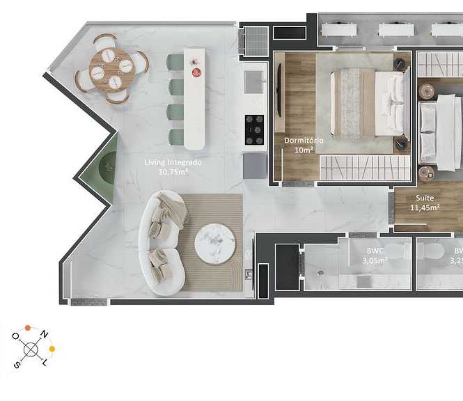 Planta 03 - 2 dorm 70m²
