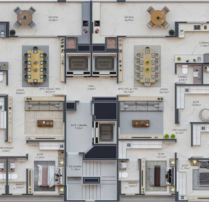 - 150.51 Área Privativa / Construída - 150.51