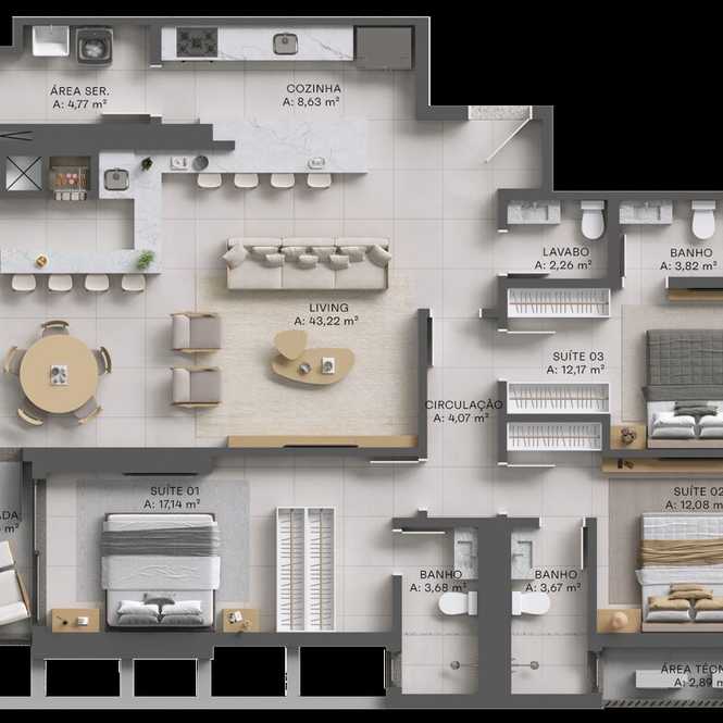 Planta 01 - 3 dorm 143m²
