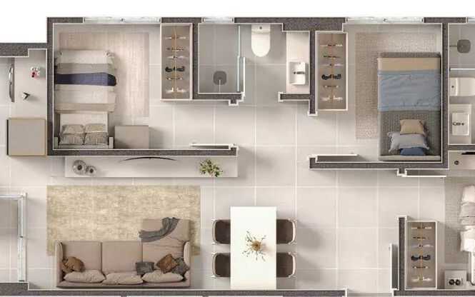 Planta 03 - 3 dorm 70m²