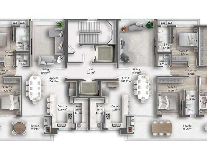 - 187.92 Área Privativa / Construída - 187.92