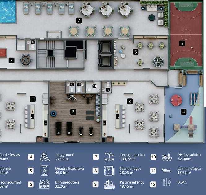 Uma estrutura excelente, com um conceito luxuoso, para oferecer comodidade aos moradores e investidores. Trazendo uma ampla escolha para a sua diversão, com uma diversidade de opções para proporcionar a tranquilidade necessária fazendo com que você desfrute do melhor da vida. O empreendimento tem foco total a família, priorizando as nossas crianças e adolescentes, proporcionando uma qualidade de vida continua e inesquecível. Preço e disponibilidade do imóvel sujeitos a alteração sem aviso prévio.