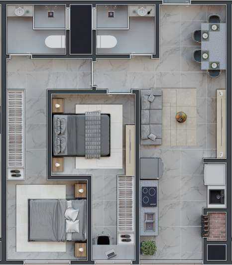 Planta 04 - 2 dorm 62,34m²