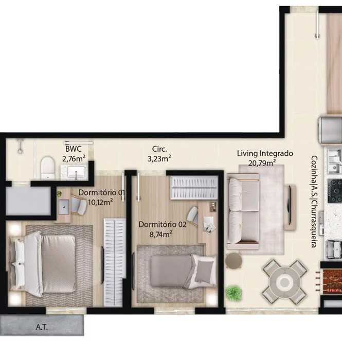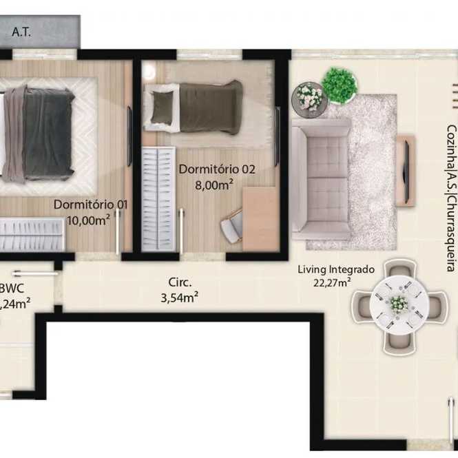Planta 02 - 2 dorm 56m²